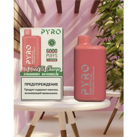 PYRO 6000 - 6000 затяжек Вкусы: Сакура-виноград Ягодный микс Мята Мохито Двойное яблоко Манго-холодок Персик-манго-арбуз Мармеладные мишки Тропические фрукты Клубника-арбуз