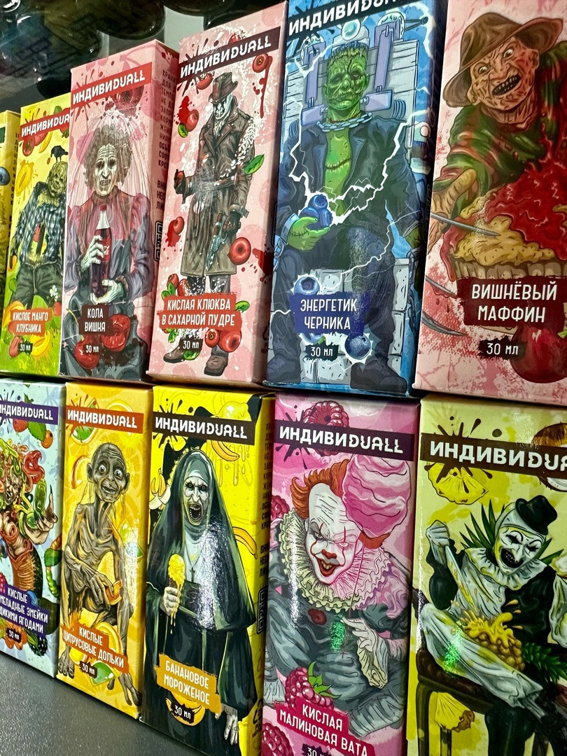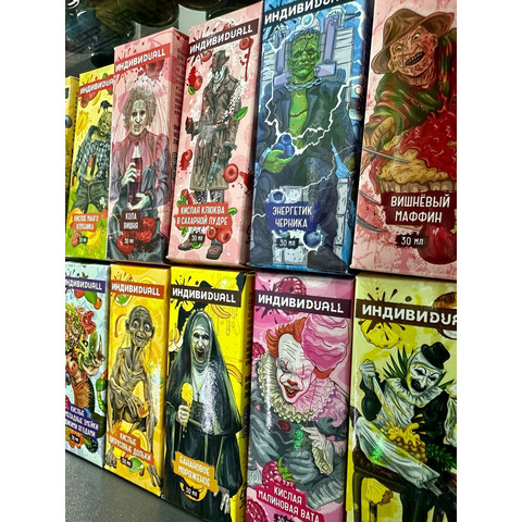 Жидкость ИНДИВИDUALL 30ML 20MG HARD В линейке 20 вкусов: • Банановое мороженое • Вишнёвый маффин • Жвачка виноград • Кислая малиновая вата • Кислое манго клубника • Кислые мармеладные змейки с дикими ягодами • Кислые цитрусовые дольки • Кола вишня • Ледян