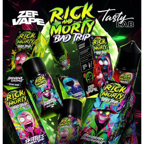 Жидкость Rick and Morty Bad Trip 30 мл 20 мг hard Вкусы: Арбуз-малина Банан-кокос Черника-вишня Грейпфрут швепс Скитлс лимон лайм Клубника-драгонфрут Смородиновый мармелад Клубника-земляника Черника-ежевика Киви-личи Фруктовые пластинки Северные ягоды Гра