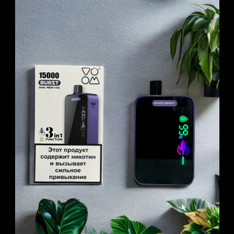 VOOM Burst 15000 - 15000 затяжек Вкусы: Черника Двойное яблоко Микс ягод Кислое яблоко Голубая малина Тройной манго Арбуз-холодок Лимон-лайм Банан-холодок Клубника-киви Ананас-холодок Мята