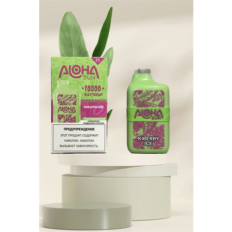 Aloha Sun - 10000 затяжек Вкусы: Тигриная кровь Манго-личи Ледниковая мармеладка Клубничная гуава Апельсиновая страсть Розовый Белый персиковый лёд Редбулл айс Голубые мечты Кивиберри айс