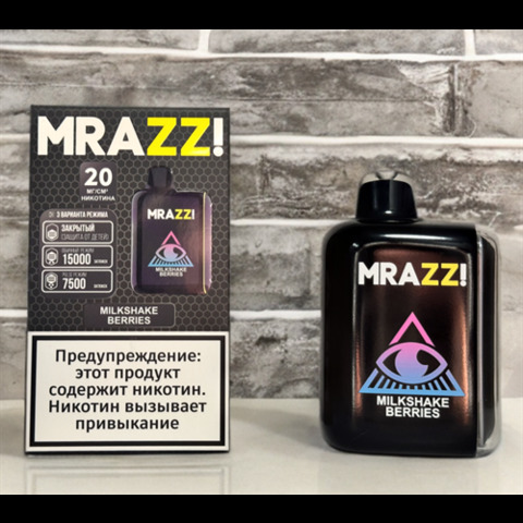 Mrazzi 15000 - 15000 затяжек Вкусы: Арбуз-вишня Арбуз Манго Мультифрукт Голубая малина Яблоко Ананас Ягодный милкшейк Черника Вишня Клубника Табак Мята Лимонная кола Ежевичный лимонад Клубника-банан Виноград Мята-лимон Виноградная жвачка Кислая малина