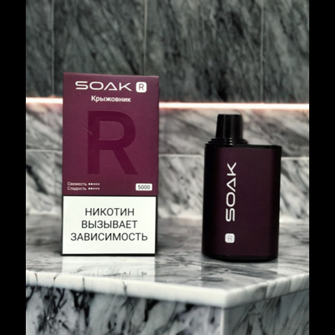 Soak R 5000 затяжек Вкусы: Анисовое яблоко Дайкири - Чёрная смородина Кешью с молоком Клубничный милкшейк Крыжовник Леденцы от кашля Малиновый чай с жасмином Мангустин-грейпфрут Мякоть киви Мятное драже Нектарин Пряный персик с лаймом Сердце дракона Сицил