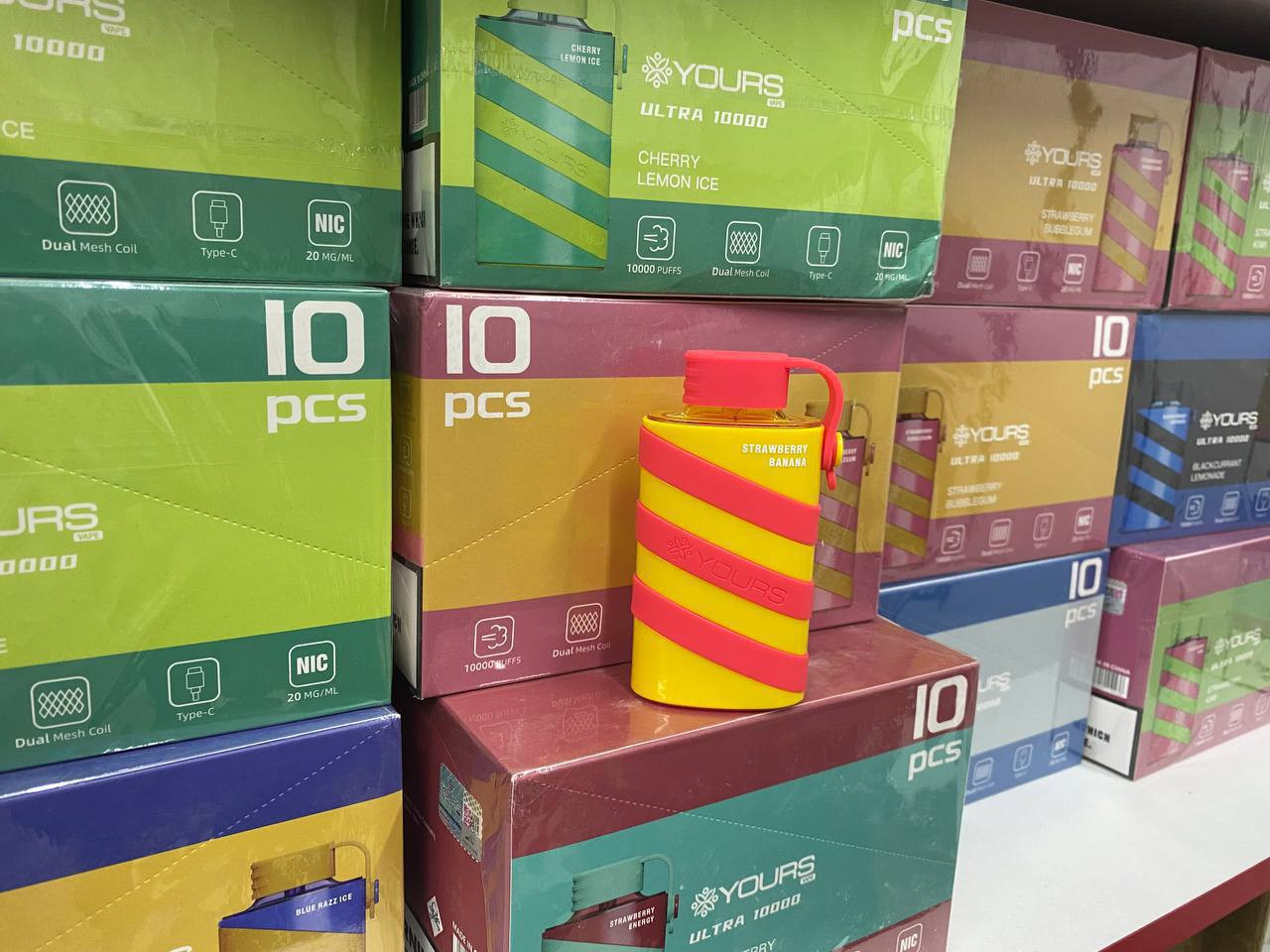 Вкусы: 1) strawberry, Kiwi 2) blackcurrant lemonade 3) sour cherry 4) strawberry bubblegum 5) blueberry cranberry 6) cherry lemon, ice 7) blue razz, ice 8) strawberry energy 9) mint 10) strawberry, banana