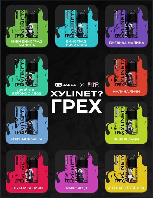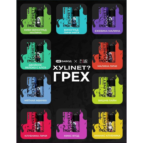 Грех & Xylinet 30 мл 20 мг hard Вкусы: Ананас-клубника-холодок Виноград-личи-мята Вишня-лайм-холодок Алое-двойное яблоко Ежевика-малина Киви-виноград-малина Клубника-личи-холодок Микс ягод Малина-личи-холодок Мятная жвачка