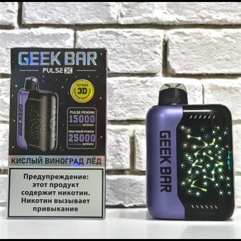 Geek Bar Pulse X 25000 затяжек Вкусы: Малина-гранат Кислый боярышник-лёд Клубника-банан Кофе-шоколад Яблоко-огурец Тройная дыня-холодок Клубничная жвачка Арбуз-холодок Ягодный микс-холодок Вишня-лайм Кислый виноград-холодок Виноград-кислое яблоко Персик-х