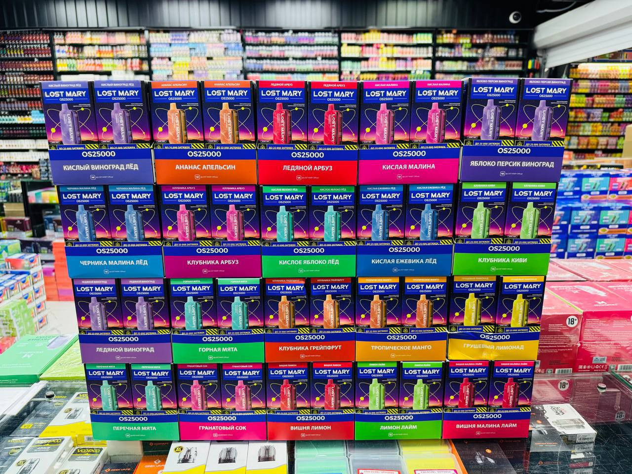 20. Вкусов 1. Кислый виноград лёд 2. Ананас апельсин 3. Ледяной арбуз 4. Кислая малина 5. Яблоко персик виноград 6. Черника малина лёд 7. Клубника арбуз 8. Кислое яблоко 9. Кислая ежевика лёд 10. Клубника киви 11. Ледяной виноград 12. Горная мята 13. Клуб