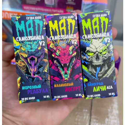 Жидкость MAD x САМОУБИЙЦА V2 [30ML 20MG EXTRA HARD] 1 - МАЛИНОВЫЙ ЙОГУРТ 10 - ВИНОГРАДНЫЙ СКИТЛС 11 - ЗЕМЛЯНИКА ЧЕРНИКА 12 - ЖВАЧКА ТУТТИ ФРУТТИ 13 - МАЛИНА ГРЕЙПФРУТ 14 - МОРОЗНЫЙ РЕДБУЛЛ 15 - МАЛИНОВАЯ ГАЗИРОВКА 16 - МОРОЗНЫЙ АРБУЗ 17 - ЧЕРЕШНЯ ЯБЛОК...