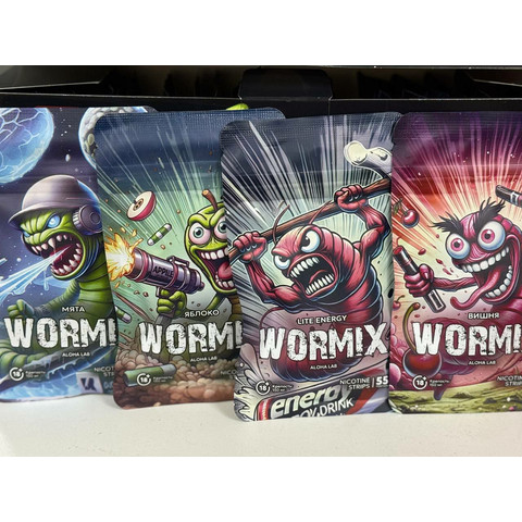 Никотиновые пластинки WORMIX [55 PORTION 150 MG] вкусы 1 - ЯБЛОКО 2 - МЯТА 3 - LITE ENERGY 4 - ВИШНЯ