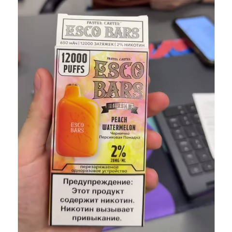 Escobar Vape 12000 затяжек Вкусы: Ледяной виноград Ледяной арбуз Манго и арбуз Ананас и киви Дыня и банан Тропические фрукты Мармеладные конфеты Черника и персик Дикие ягоды Радужные мармелад