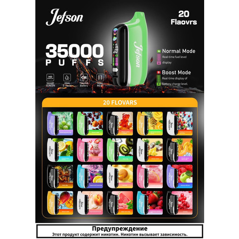 JETSON 35000 затяжек — это ультрамощная одноразовая электронная сигарета, созданная для максимально долгого использования без подзарядки и заправки. Отличается ярким вкусом, плотным паром и современным дизайном.