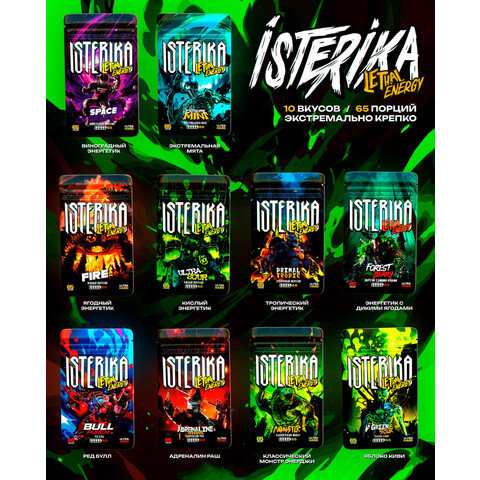ISTERIKA LETHAL ENERGY — мощные никотиновые пластинки с насыщенным вкусом и быстрым эффектом. Идеальны для уверенных пользователей.