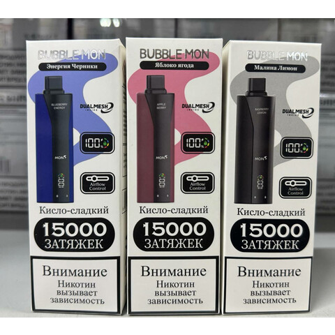Bubble Mon BOOSTER 15000 — одноразовый вейп с дисплеем, зарядкой и насыщенным вкусом. До 15000 затяжек в компактном формате.