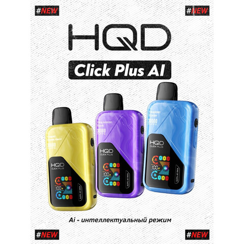 HQD Click Plus 30000 — мощная одноразка с дисплеем, зарядкой и яркими вкусами. До 30000 затяжек в одном стильном устройстве. Спросить ChatGPT