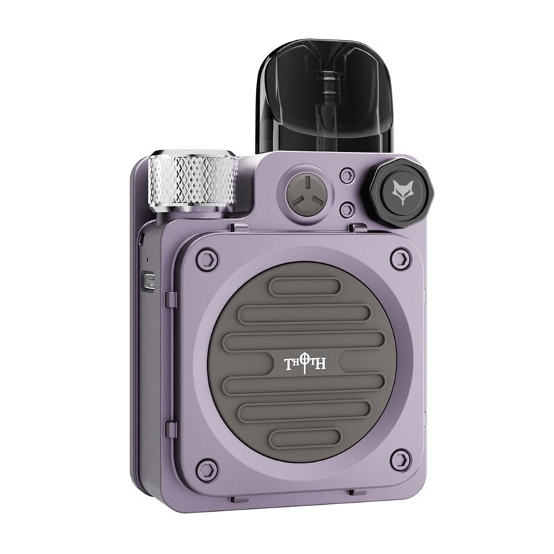 Набор Kumiho THOTH T Kit оснащен встроенным аккумулятором ёмкостью 1300 мАч, поддерживает постоянное напряжение и совместим с картриджами серии THOTH объёмом 2 мл. Изготовленный из цинкового сплава и поликарбоната-тетрагидрофурана (PCTG), этот набор имеет характерный дизайн в форме радиоприёмника и дополнен вращающимся механизмом, который добавляет немного веселья. Благодаря двум режимам активации (кнопка запуска или автоматическое затягивание), THOTH T автоматически отключается через 10 минут бездействия, что повышает удобство использования. Система управления обдувом, разработанная для переходов с RDL на MTL, позволяет точно настроить параметры.