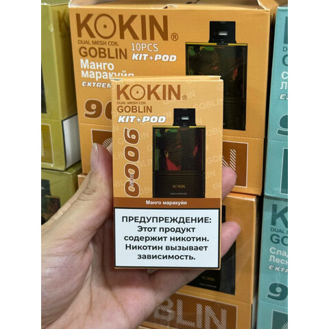 KOKIN GOBLIN 9000 затяжек — это одноразовый вейп, сочетающий современный дизайн, качественные компоненты и до 9000 насыщенных затяжек. Подходит как для новичков, так и для опытных пользователей.