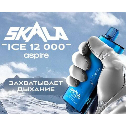 SKALA ICE 12000 – одноразовый вейп с ресурсом до 12 000 затяжек, освежающим вкусом и современным дизайном для комфортного и продолжительного парения.