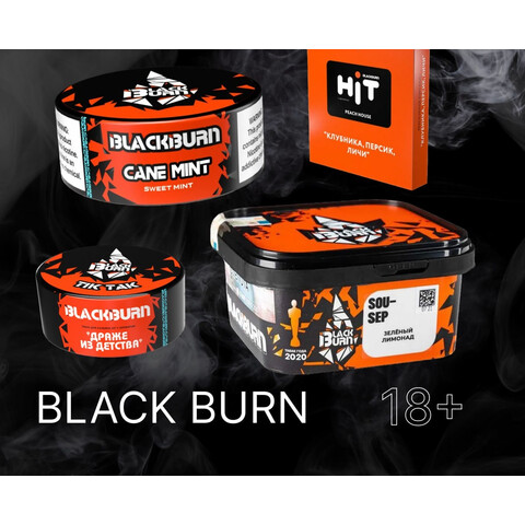 BLACK BURN 200g — топовый табак для кальяна, который сочетает яркую вкусовую линейку, хорошую жаростойкость и оптимальную крепость. Отличный выбор для любителей насыщенного дыма.